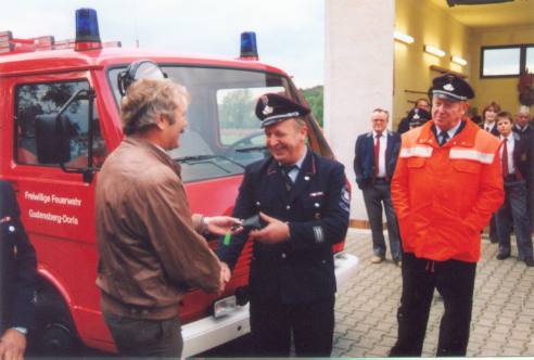Es wird ein neues Tragkraftspritzenfahrzeug (TSF) auf VW LT 35 übergeben. Die Anschaffung war notwendig, da der Ford Transit durchgerostet war.