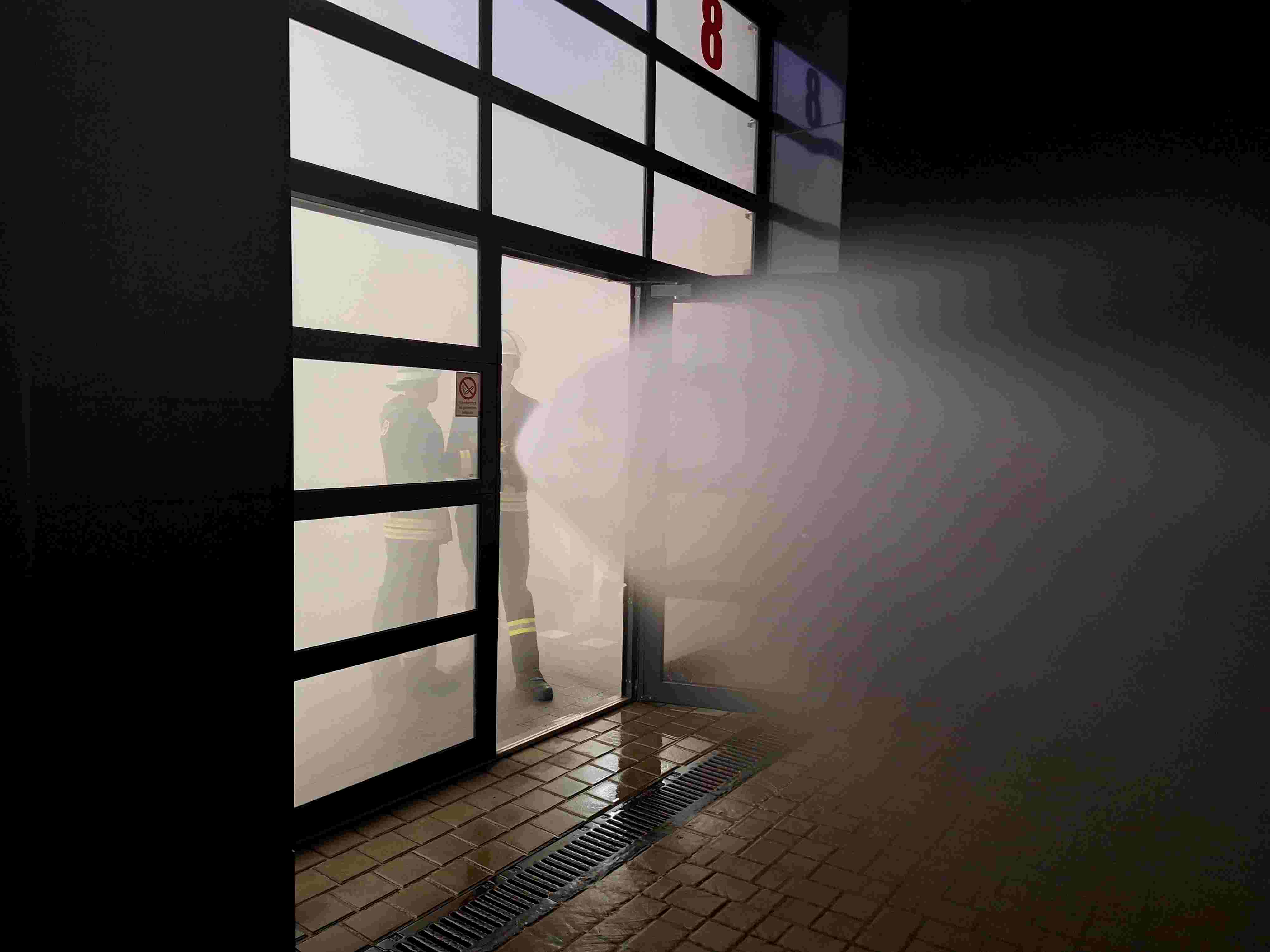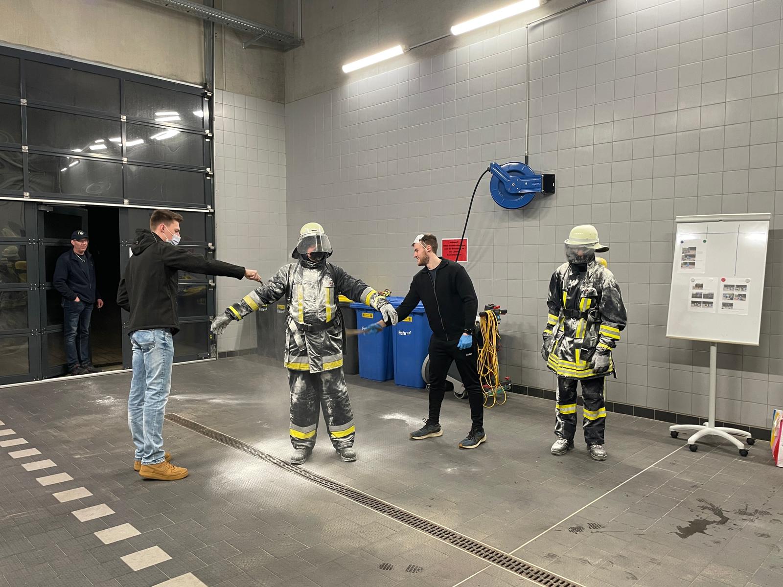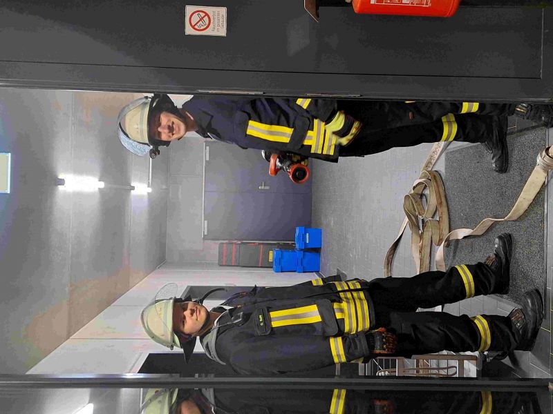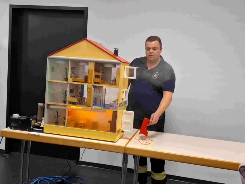 Sehr interessant war die Darstellung der hydraulischen Ventilation. Mittels Wasserabgabe durch eine Öffnung (Tür oder Fenster) wird hierbei ein Sog erzeugt (Venturi-Effekt), der Rauch wird mitgerissen und aus dem Gebäude gezogen.