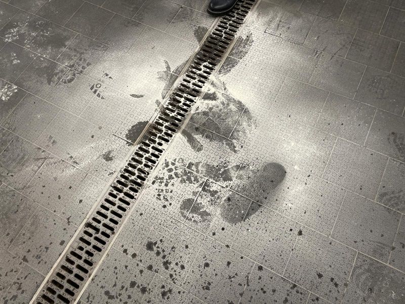 Im praktischen Teil ging es um die Grobreinigung und das richtige Ablegen der PSA. Hier wurde die nicht sichtbare Kontamination mittels Mehl dargestellt. Die Hygienehelfer trugen "symbolisch" nur einen Mundschutz, im Einsatzfall muss ebenfalls bei ihnen der Eigenschutz mit weiteren Maßnahmen, wie Schutzanzug, Handschuhe, usw. bestehen.