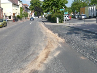 Um 16:02 Uhr alarmierte die Leitstelle die Feuerwehr Gudensberg mit dem Stichwort „Dieselspur Besser Straße). Insgesamt 31 Einsatzkräfte mit 4 Fahrzeugen waren bis kurz vor 18:00 Uhr damit beschäftigt, Ölbindemittel auszubringen, damit der Kraftstoff gebunden und die Fahrbahn entsprechend abgestumpft wurde. Anschließend würde das Bindemittel wieder aufgenommen.