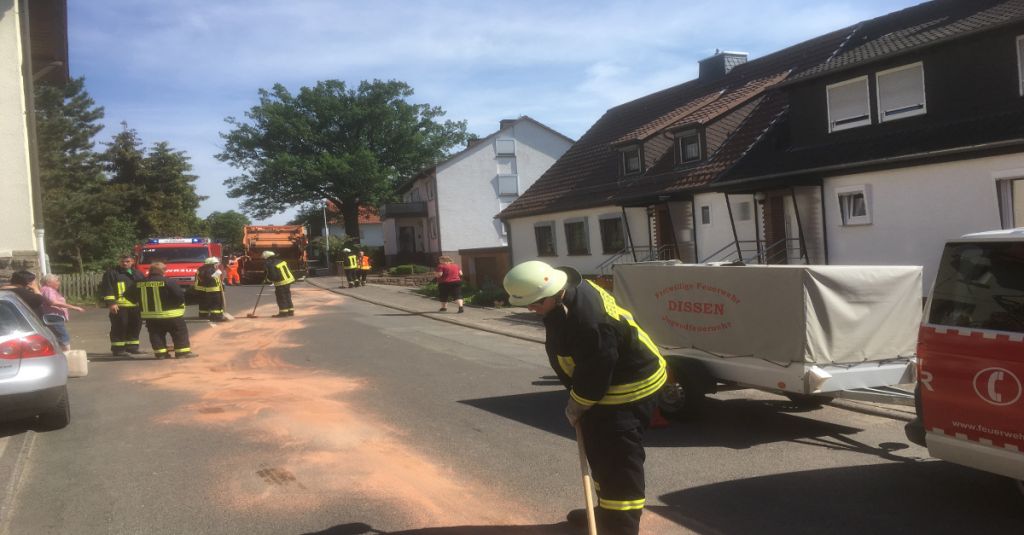 Am Dienstag Vormittag 07.06.2016 rückte die Feuerwehr Dissen und Deute gegen 10:25 Uhr aus. In der Chattenstraße in Dissen musste eine Ölspur mit Bindemitteln abgestreut werden.
