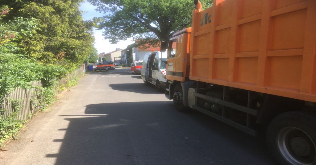 Hier hatte eine Müll-Laster, durch einen Technischen Defekt, eine ca.50 Meter lange Öl-Spur verursacht.