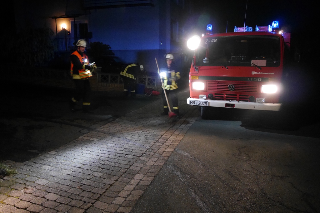 Aus einem Kfz war aufgrund eines techn. Defekts Dieselkraftstoff ausgetreten. Der Fahrer des Kfz. bemerkte dies bei der Ankunft in Obervorschütz. Er informierte selbst die Feuerwehr.