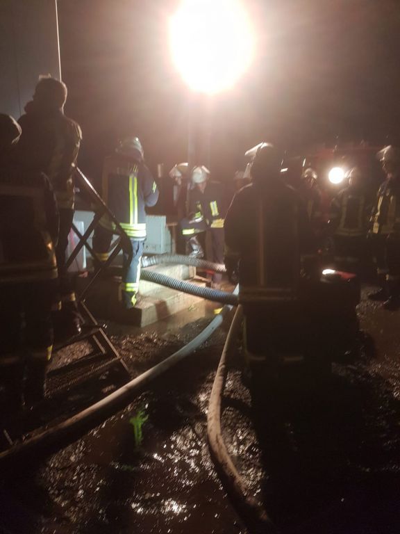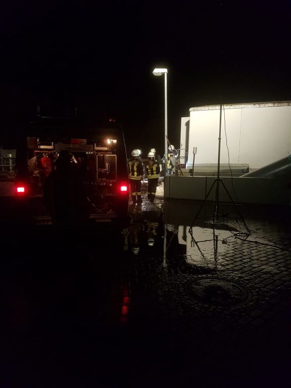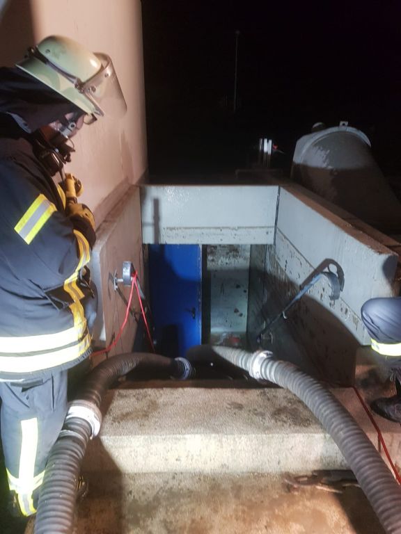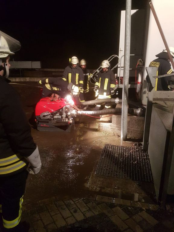 Dort liefen durch den anhaltenden Regen in der Nacht größere Mengen Wasser in einen Kompressor Raum inkl. Treppenaufgang der dadurch etwa 2. Meter unter Wasserstand.