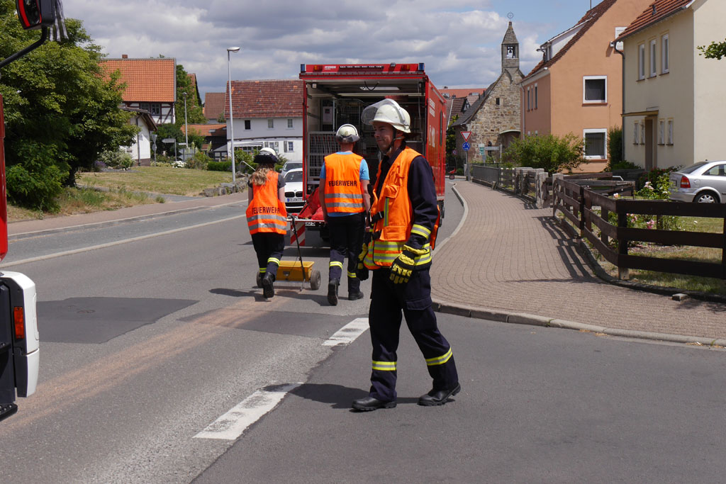 Aus dem Motor eines PKW waren Betriebsmittel ausgetreten. Dadurch wurden die Fritzlarer Str, der Schwimmbadweg, die L 3220 Richtung Maden, der Langhausring und der Feuersteinweg auf einer Länge von fast 2 Kilometern mit einer dünnen Spur Betriebsmittel verunreinigt. Der Fahrer alarmierte selbst die Feuerwehr.