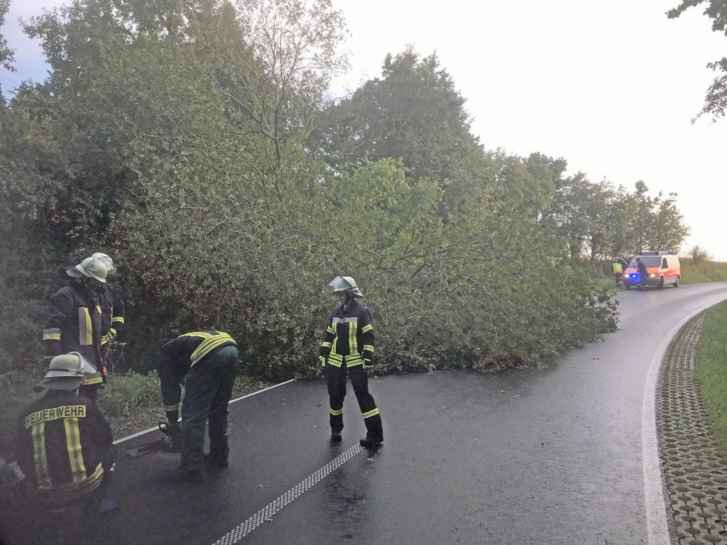 Unter der Einsatzleitung von Markus Iffert wurde der Windbruch mit Hilfe einer Motorkettensäge rasch aufgearbeitet. Nach ca. 30. Minuten konnte die Straße für den Verkehr wieder freigegeben werden.