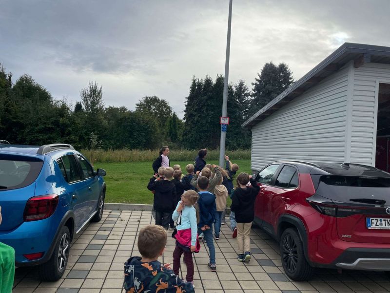 Schnell zum Fenster und den Einsatzkräften und Fahrzeugen beim ausrücken zuschauen.