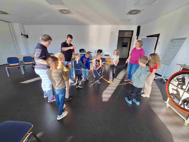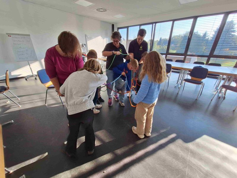 Konzentration, Geschicklichkeit, Koordination und Beweglichkeit war dann beim Gordischen Knoten mit dem Seil gefragt.