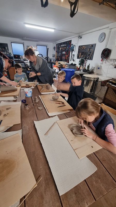 In der Werkstatt der lieben Nathalie bekam jeder ein Stück Ton und konnte seiner Kreativität freien Lauf lassen. Die Kinder hatten die tollsten Ideen und es war großartig zu sehen wie sie mit voller Hingabe an ihren Werken gearbeitet haben und sich auch gegenseitig unterstützt haben um ihre Ideen umzusetzen.