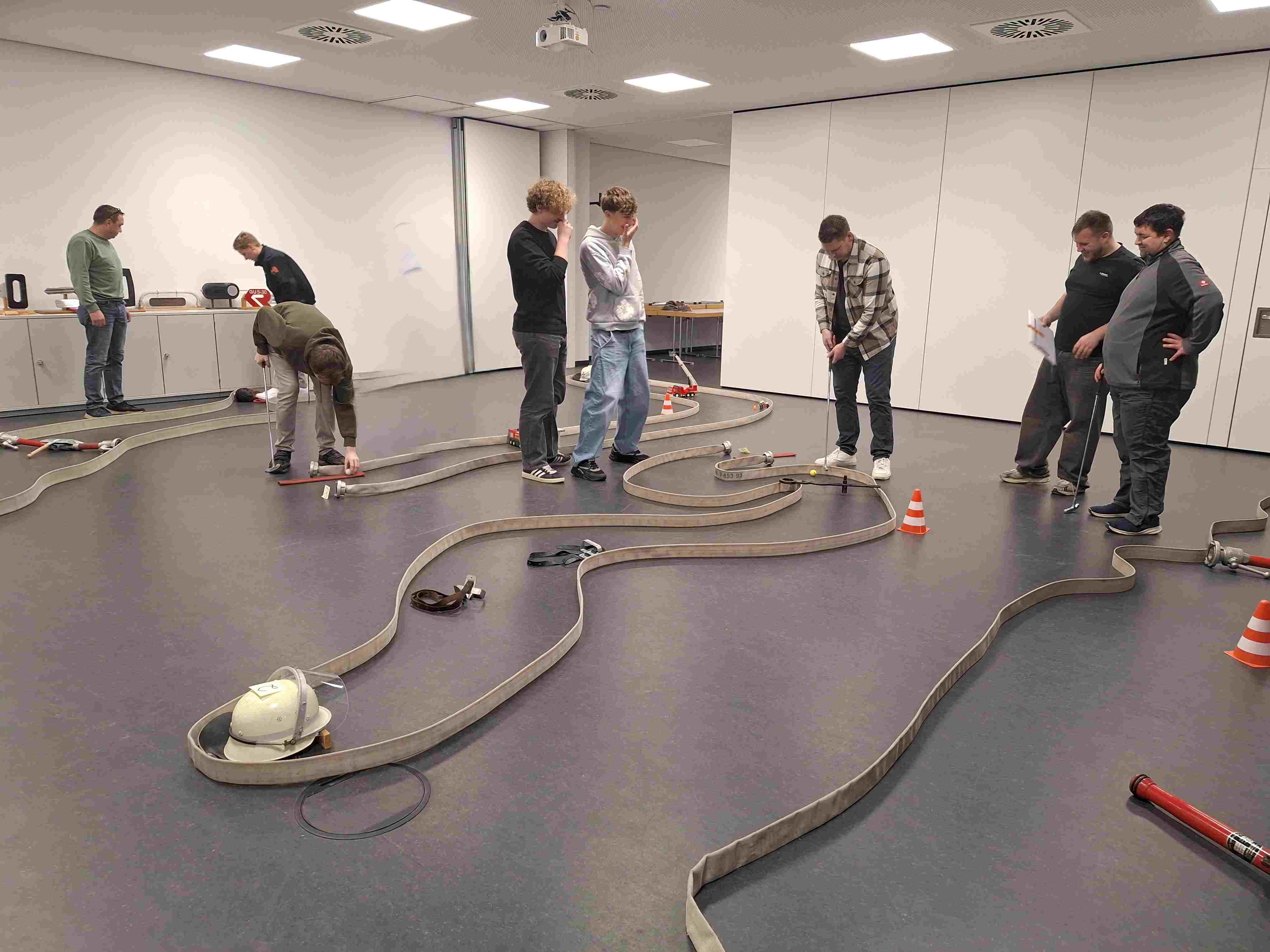 Besonders gut kam die Bahn an, bei der der Ball zunächst durch ein Playmobil - Tor gespielt werden musste und die Mannschaft bei der Drehleiter im Hinteren Teil nicht berührt werden durfte… eine spannende Aufgabe.