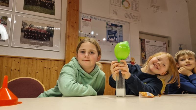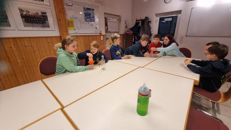 Nik, Mitglied unserer Jugendfeuerwehr, hat sich die Mühe gemacht und mit voller Freude auf die Stunde vorbereitet und den Feuerlöwen ein paar spannende Experimente gezeigt.