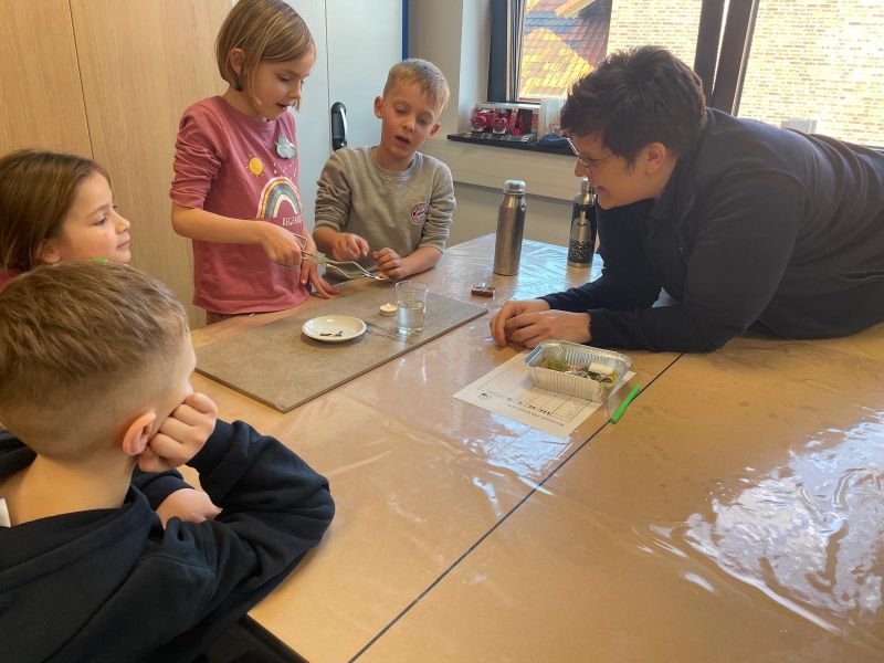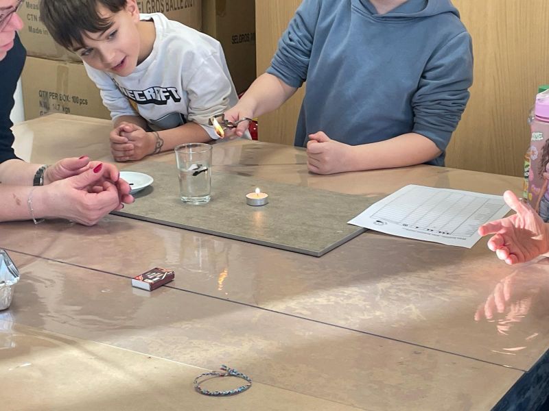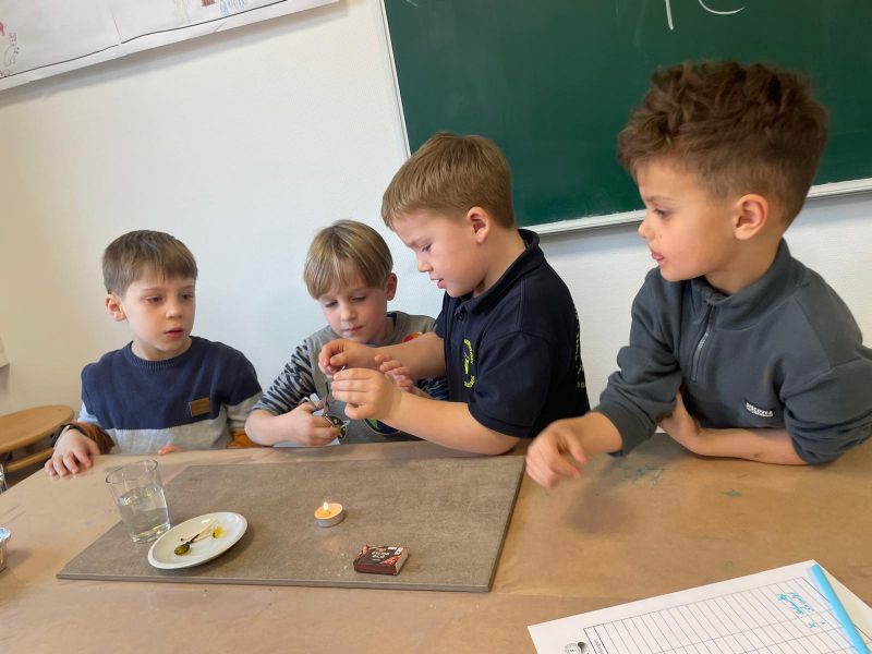 Streichhölzer, Teelicht, feuerfeste Unterlage, viele kleine Gegenstände, eine Tiegelzange und selbstverständlich Löschwasser…