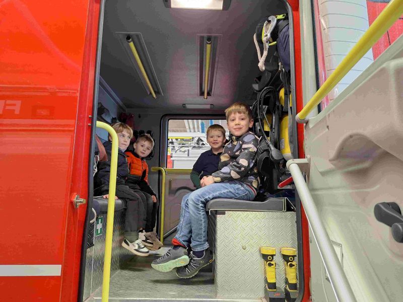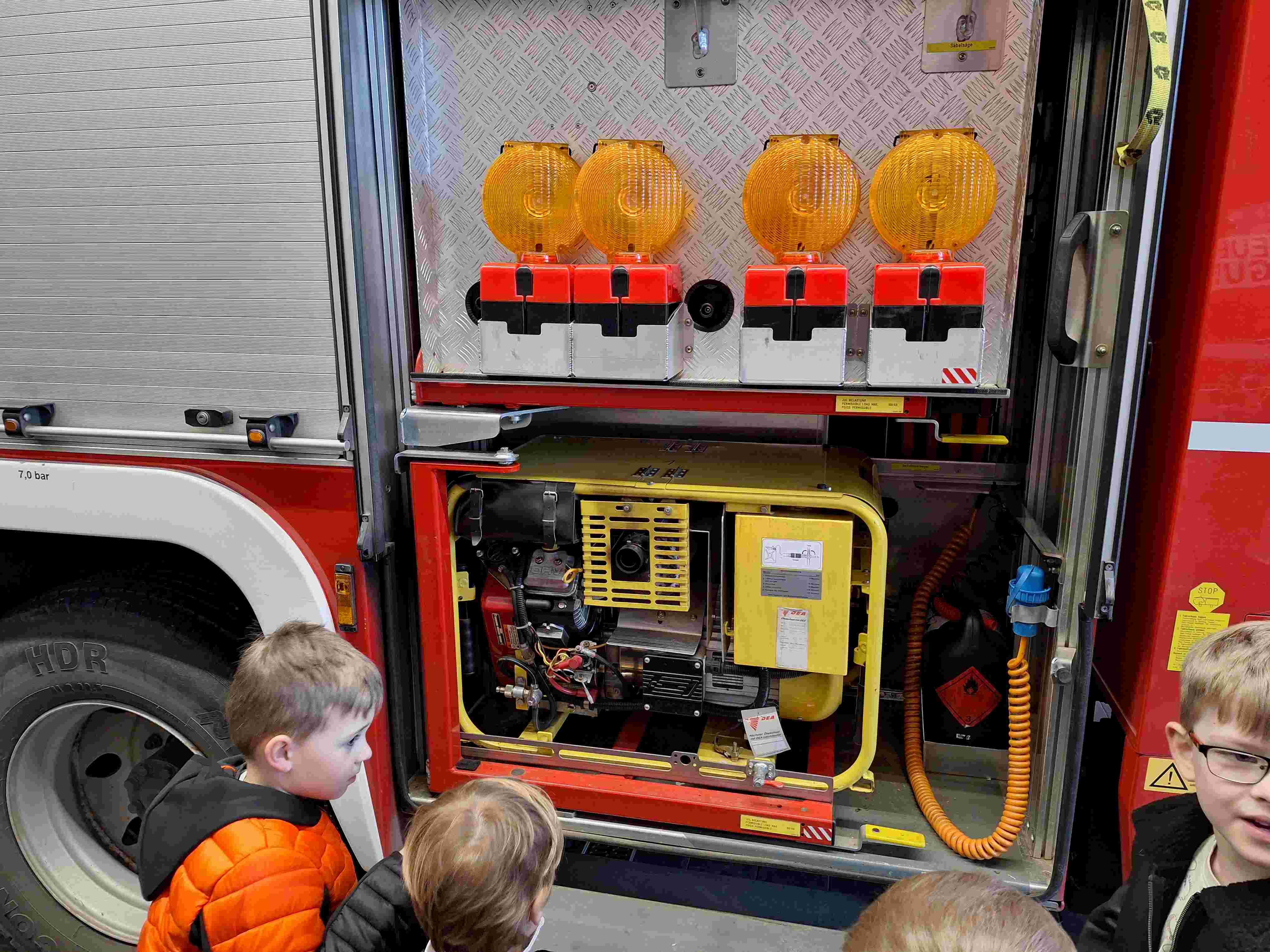 Wir schauten in verschiedene Geräteräume und nahmen auch im Fahrzeug Platz…