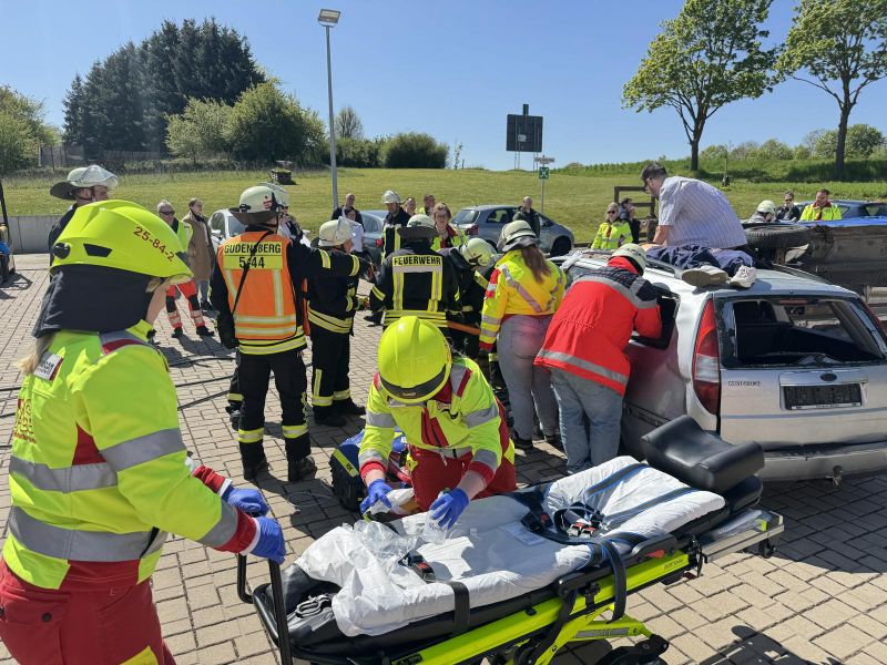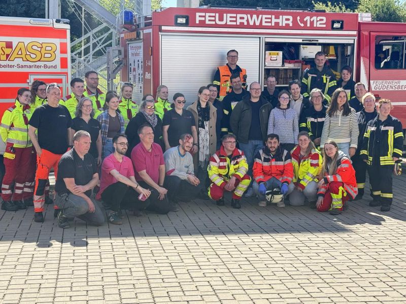 Am Samstag fand im Feuerwehrhaus Gudensberg der praktische Höhepunkt der 80‑stündigen Zusatzweiterbildung Notfallmedizin statt. In einer umfangreichen Abschlussübung arbeiteten Feuerwehr, Rettungsdienst und Notärzt:innen eng zusammen, um Einsatzsituationen zu trainieren.