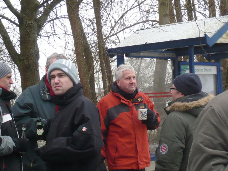 Der Wettergott hatte es an diesem Jahr nicht gerade gut gemeint. Bei Temperaturen um den Gefrierpunkt, leichten Nieselregen und einer steifen Prise führte der Weg von Dorla, vorbei an der Hille-Mühle in Richtung Obervorschütz. Am Spielplatz an der Ems in Vorschütz wurde eine erste Rast eingelegt. Der weitere Weg führte dann Richtung Kläranlage, Maden und hier zum Sportplatz. Hier konnten die Wanderer sich stärken.