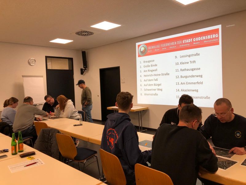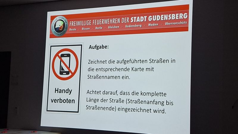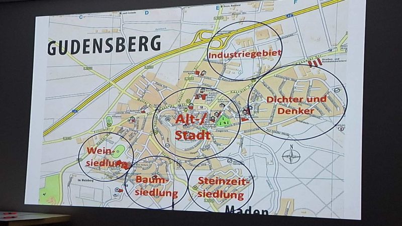 Im praktischen Teil mussten auf dem Gudensberger Stadtplan (Vogelperspektive) 15 vorgegebene Straßen markiert und namentlich benannt werden. Ebenfalls mit einigen Straßen der Stadtteile.