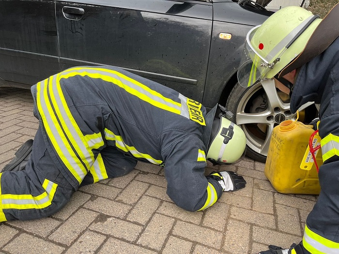 Die Einsatzkräfte brachten Bindemittel auf ausgelaufene Flüssigkeit. Danach Rückfahrt zum Feuerwehrhaus.