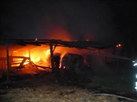 Die gelagerten Strohvorräte wurden mit einem Schlepper auseinander gezogen, damit sie kontrolliert abbrennen.