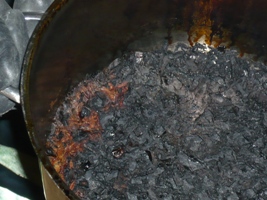 Der Angriffstrupp ging sofort mit einem C-Rohr in das Gebäude vor. Die Eingangstür zur Wohnung war verschlossen und musste aufgebrochen werden. Die Küche war verraucht, aber nicht durch Brandrauch, sonder durch den Qualm des verbrannten Essens. Der Topff mit den Resten des Mittagessensstand aber nicht mehr auf dem Ofen, sondern auf der Spüle und der E-Herd war ausgestellt. Die Wohnung wurde nach der Bewohnerin abgesucht. Es befand sich aber keine Person in der Wohnung