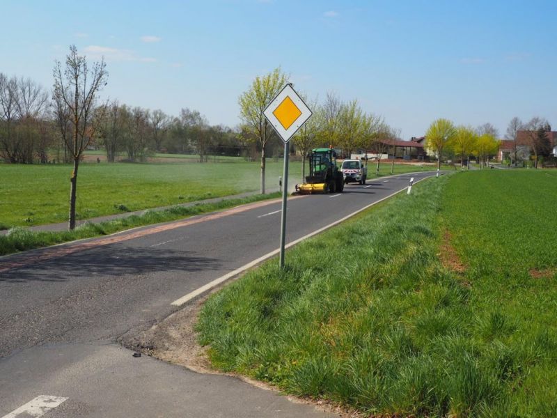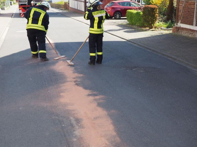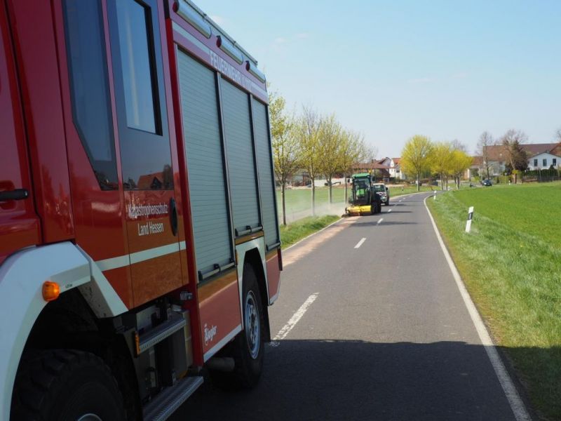 Durch den Defekt an einer landwirtschaftlichen Maschine wurde eine Ölspur von ca. 2,5 km Länge vom Friedhof Obervorschütz bis zum Ortseingang Maden verursacht.