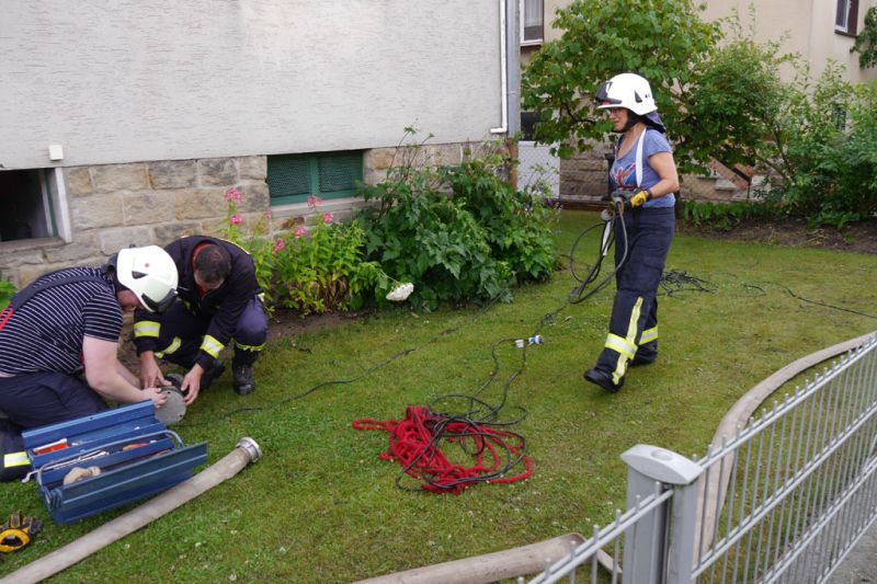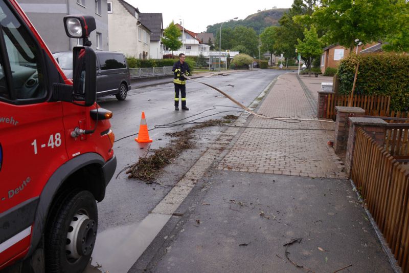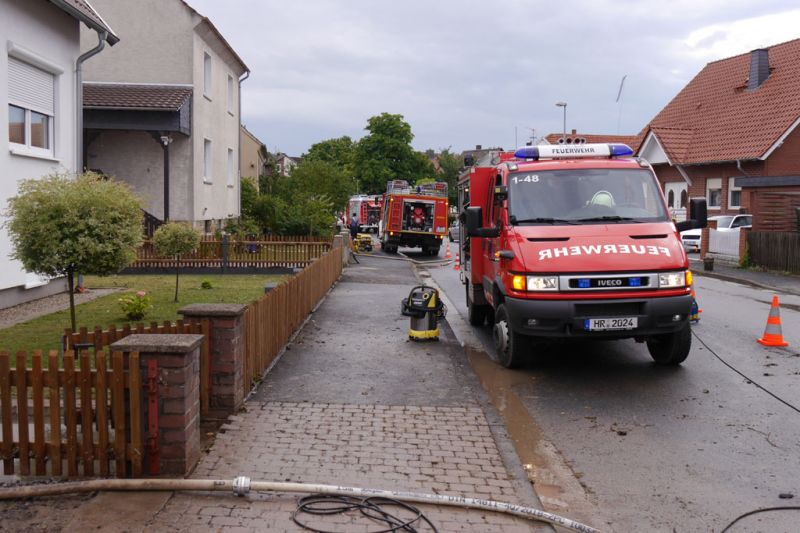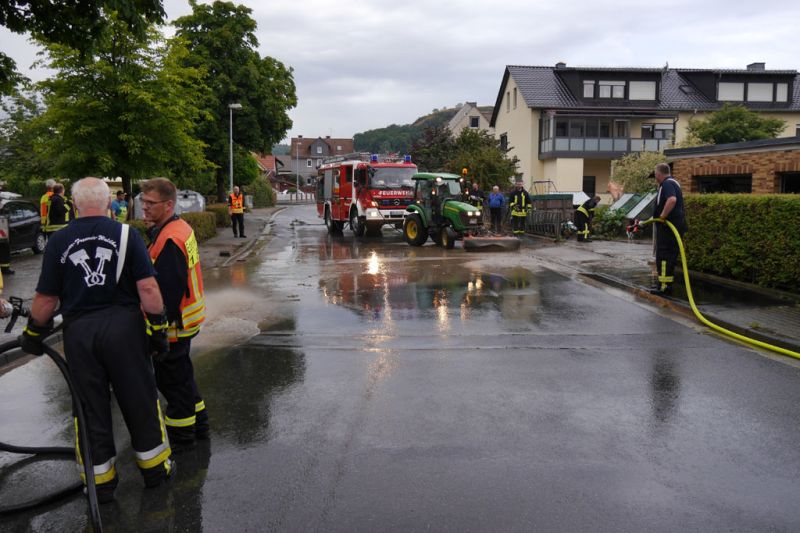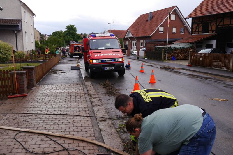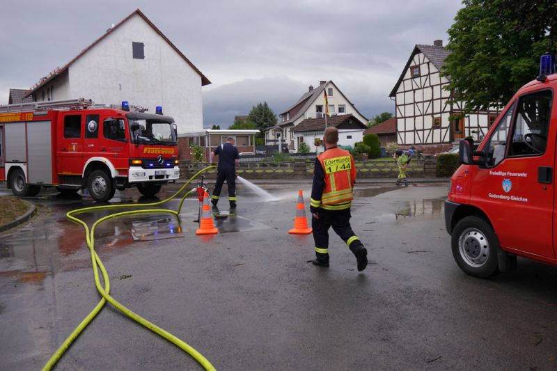 Da die Meldungen über vollgelaufene Keller im Prinzip im Minutentakt eingingen, wurden alle Feuerwehren der Stadt Gudensberg alarmiert. Mit insgesamt fast 80 Einsatzkräften sind in der Zeit von 14:13 Uhr bis ca. 20:00 Uhr 45 Einsatzstellen abgearbeitet worden. Unterstützt wurden die Feuerwehren Gudensberg von der Feuerwehr Edermünde-Besse mit 3 Fahrzeugen und 15 Einsatzkräften.