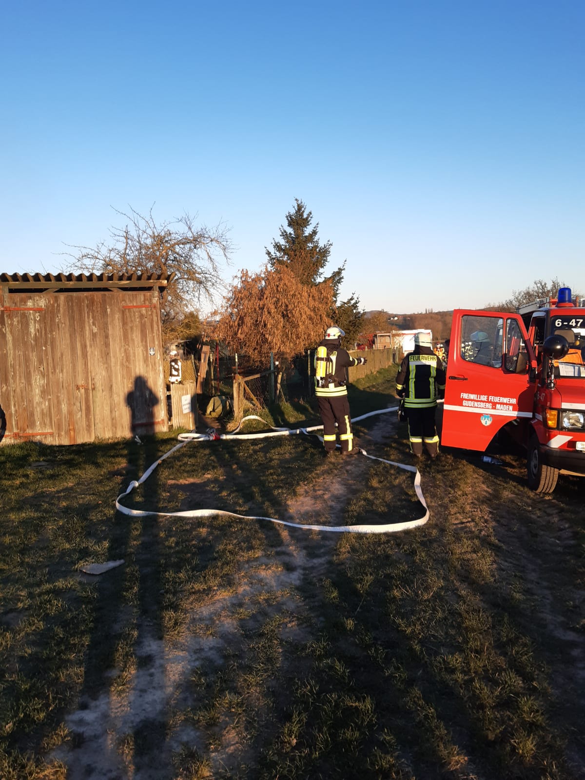 Die beiden Feuerwehren waren am 30.03.2020 um 7:20Uhr von der Leitstelle zu dem Feuer alarmiert worden. Beim Eintreffen der ersten Einsatzkräfte brannte ein Teil des Schuppens.Unverzüglich gingen die Kräfte zur Brandbekämpfung vor. Mit Hilfe von einem C-Strahlrohr wurde das Feuer schnell unter Kontrolle gebracht. Mit Hilfe einer Wärmebildkamera kontrollierten die Einsatzkräfte die Brandstelle. Für die Feuerwehren war der Brandeinsatz nach gut einer Stunde beendet.