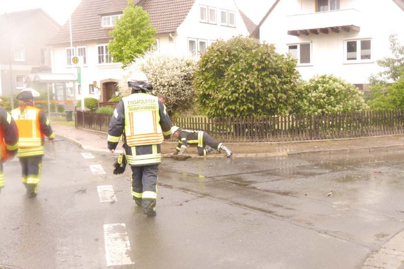 Mit diesem Stichwort wurde die Feuerwehr Gudensberg am heutigen Nachmittag alarmiert. Bei Ankunft an der Einsatzstelle war das eingedrungene Wasser bereits abgelaufen. Ein Eingreifen war nicht mehr notwendig. Zwei weitere Einsatzstellen befanden sich in der Gerhardt Hauptmann Straße. In einem Keller stand das Wasser ca. 20 cm hoch. Durch freilegen eines Abflusses konnte hier das Wasser relativ schnell abfließen. In dem anderen Hauskeller konnten sich die Bewohner selbst helfen, so dass die Feuerwehr nicht tätig werden brauchte.