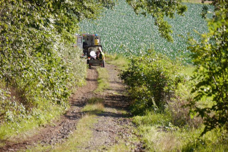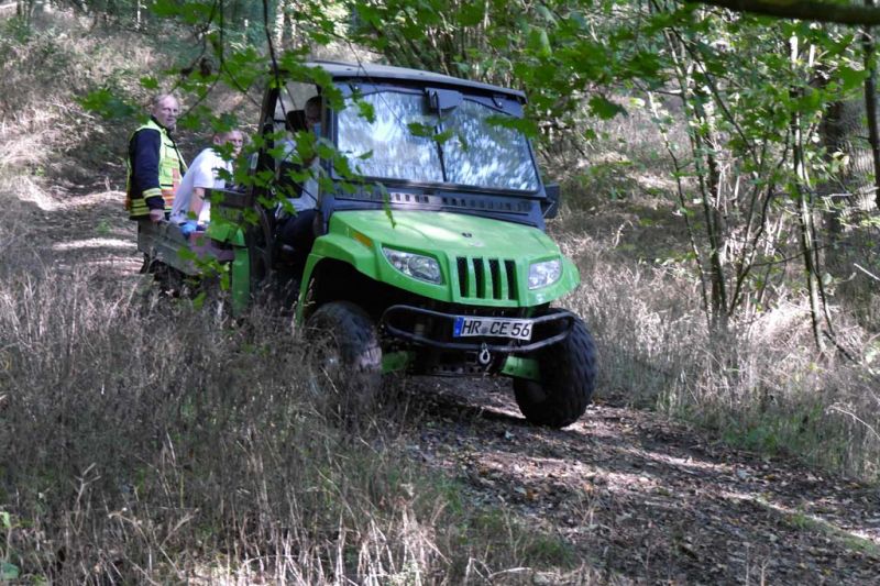 Hier erfolgte dann eine Umlagerung auf die Ladefläche des Quads und vorsichtig erfolgte die Fahrt zum Rettungswagen. Die weitere Behandlung erfolgte dann in einem Kassler Krankenhaus.