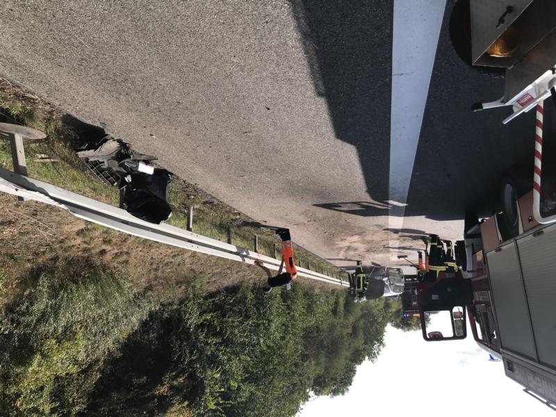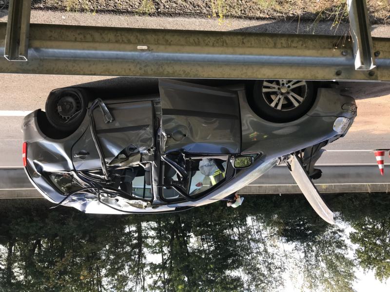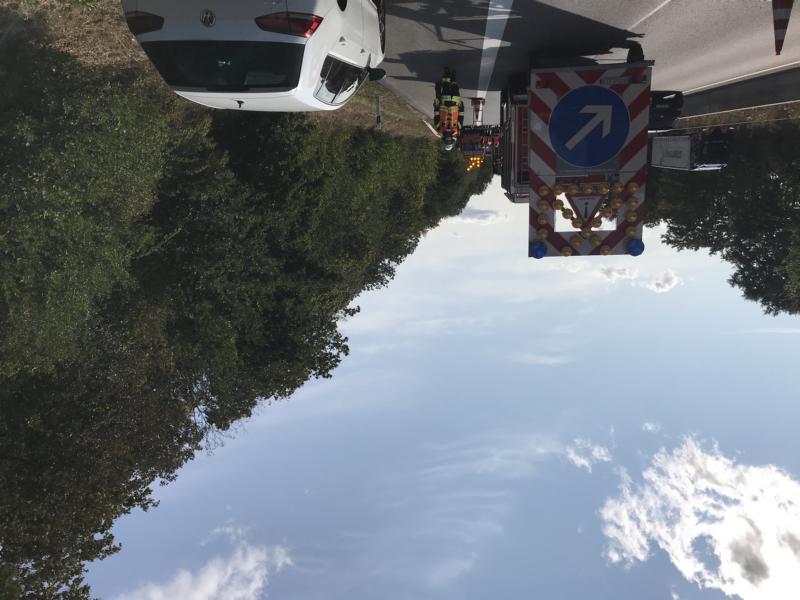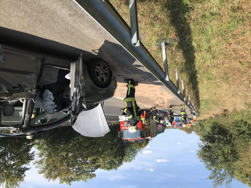 Der Fahrer eines VW Touran verlor vermutlich die Kontrolle über sein Fahrzeug. Er fuhr daraufhin auf den Anfang einer Leitplanke, wodurch der PKW in die Luft gehoben worden sein muss und überschlug sich dabei.Beim Eintreffen der Einsatzkräfte von der Feuerwehr war der Fahrer bereits durch den Rettungsdienst in ein Krankenhaus gebracht worden.