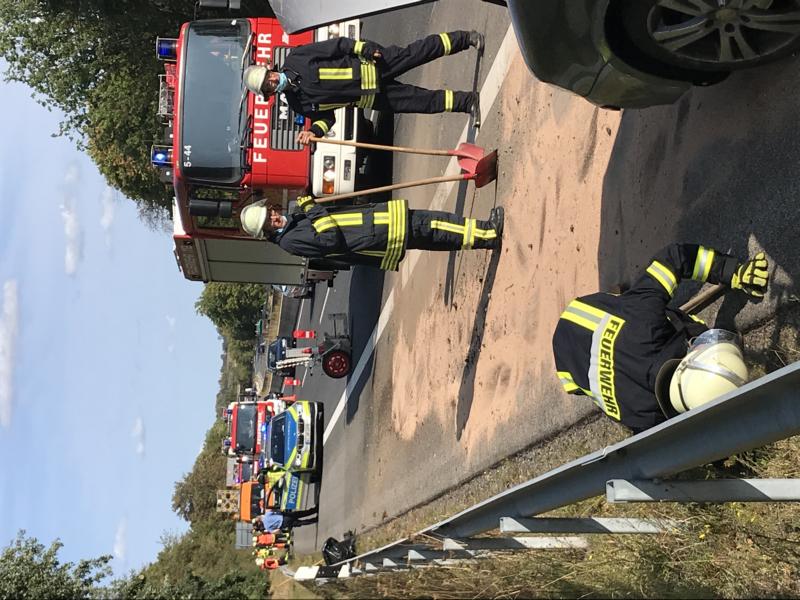Die Feuerwehren sicherten daraufhin nur noch die Unfallstelle ab und nahmen die auslaufenden Betriebsstoffe des verunfallten Fahrzeuges auf. Aus diesem Grund wurde die Fahrbahn einseitig für gut eine Stunde gesperrt.
