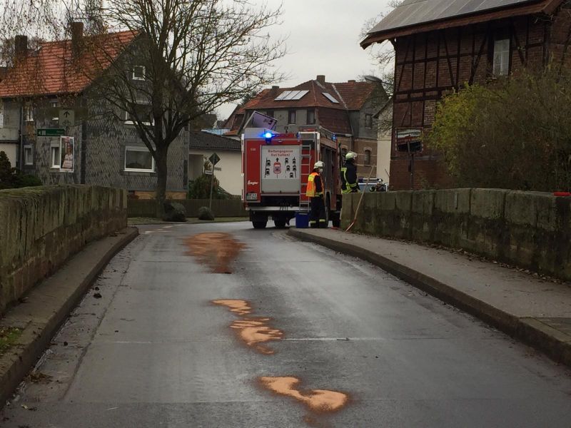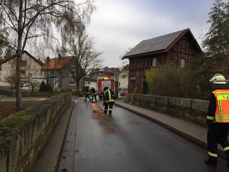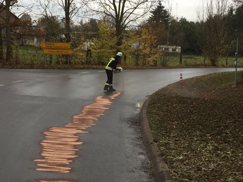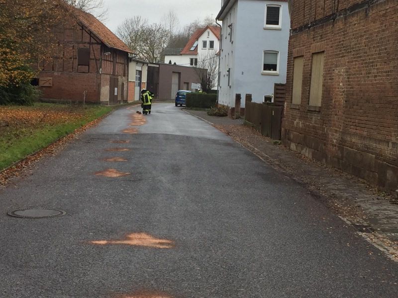 In Obervorschütz wurden mehrere, größere Ölflecken im Kreuzungsbereich Richtung Niedervorschütz und in der Emsstraße gemeldet. Die Einsatzkräfte der Feuerwehr Obervorschütz streuten den Bereich mit Ölbindemittel ab.