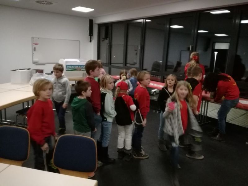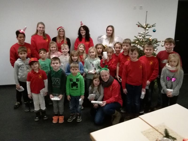 Für jeden, auch für die Betreuerinnen (wir mussten ebenfalls bei ihm antreten) hatte er ein Geschenk dabei. Beim gemeinsamen auspacken konnte sich jeder über seinen eigenen Feuerlöwen Beutel freuen.