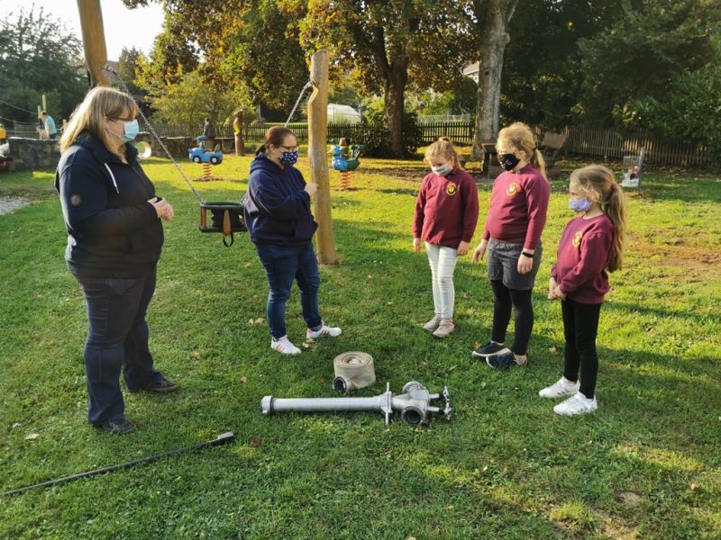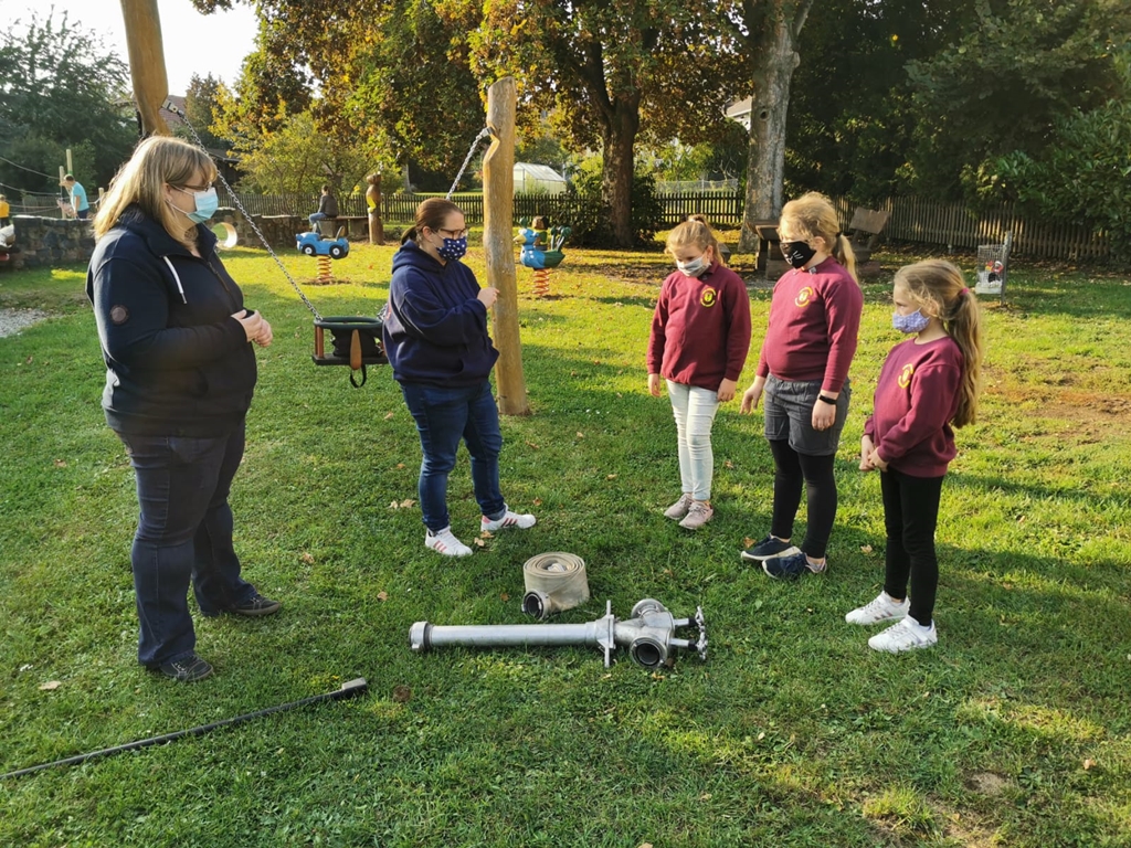 Die kleinen Löwen durften einige tolle Fragen und Aufgaben lösen. Darunter galt es die fünf „W“ des Notrufes nennen, Knoten zu binden, wo bekommt die Feuerwehr ihr Wasser her, erklären was ein Feuer zum Brennen benötigt, was gehört zur Schutzausrüstung eines Feuerwehrmannes, Geräte zu benennen die die Feuerwehr zu Ihren Einsätzen benötigt, Aufgaben der Feuerwehr mit einem Puzzle zu erklären und zu zeigen wie man richtig eine Kerze anzündet.