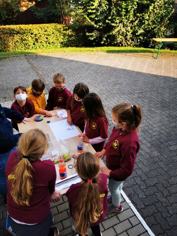 Um diese Aufgaben mit Spaß und Freude spielerisch zu lösen, gaben sich die Betreuer Michaela Pürkardt und Daniela Umbach zusammen mit einigen Eltern, unter Einhaltung der Feuerwehreignen Corona Hygiene Vorschriften, besonders Mühe um einige tolle Stationen, an denen die Aufgaben zu lösen waren, aufzubauen.