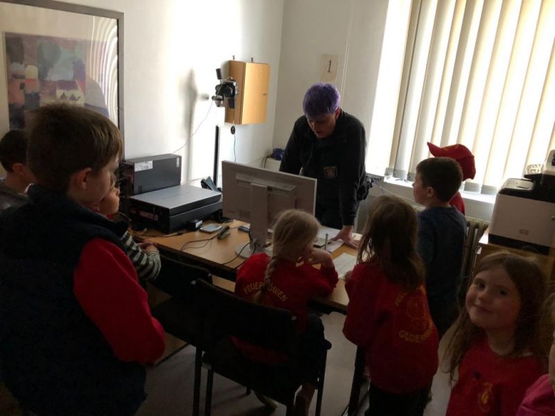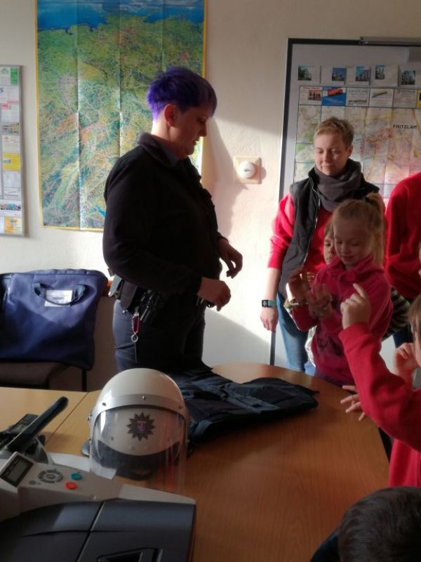 Pünktlich um 17 Uhr wurden wir ein zweites mal von der Polizeioberkommisarin Trautmann erwartet. Herzlichen Dank auch hier nochmal für die zweifache Führung durch die Polizeistation in Fritzlar. Es hat uns allen sehr gut gefallen und wir sind gespannt, ob wirklich der Feuerlöwe der sich gemeldet hat irgendwann bei euch im Polizeidienst zu finden ist.