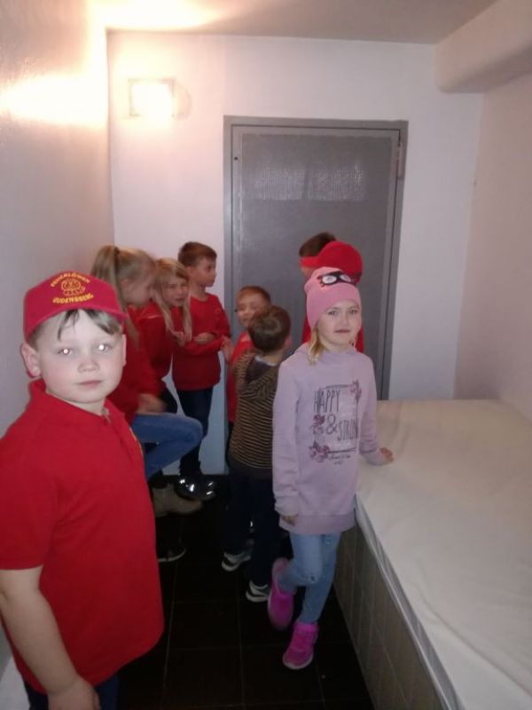 Und dann ging es in den Keller in den Knast ( Gefängniszelle ), zack...Tür zu und alle Feuerlöwen waren hinter der schweren Tür eingeschlossen. Zum Spaß wurde kurz das Licht ausgemacht und sie waren alle zu hören. Ebenso waren sich alle einig, hier möchte niemand übernachten oder eingesperrt sein.