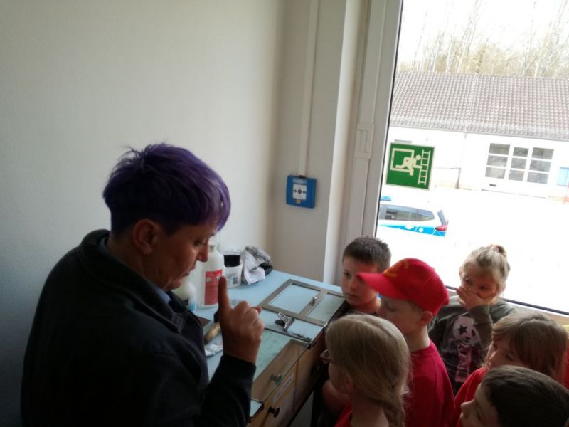 Die Fingerabdrücke wurden von allen genommen, allerdings mit einem normalen Stempelkissen. Danach wurde uns gezeigt wie es in Wirklichkeit gemacht wird und in welchem Raum es geschieht. Im Nebenraum wird dann ein nettes Bild von dem Straftäter gemacht und er wird gewogen und vermessen, zur Identitätserkennung.