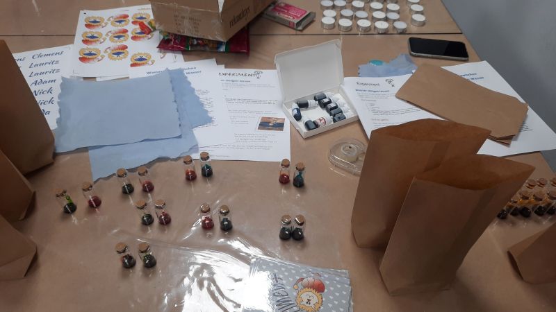 Mit viel liebe wurden insgesamt 69 Tütchen mit dem Inhalt der Experimente gepackt. In jeder Tüte befand sich das Zubehör für jeweils 2 Experimente mit Anleitung.