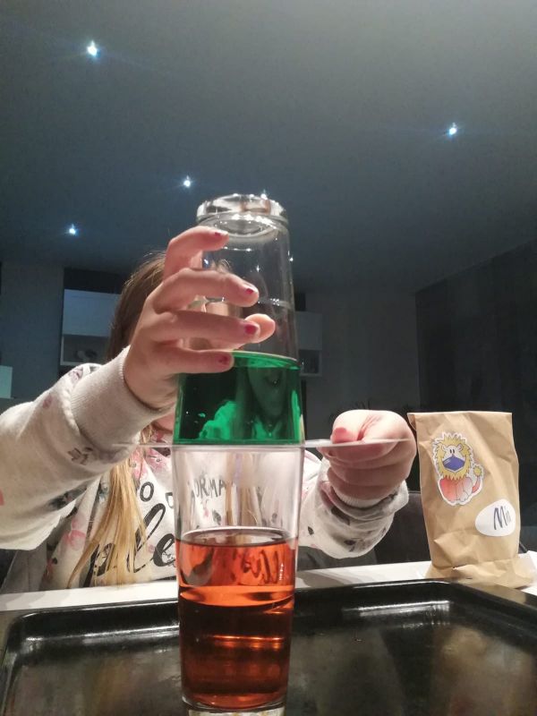 Dann wurde das benötigte Zubehör für alle Experimente besorgt, Teelichter, Speisefarben, Becher, Tischtennisbälle, Brausetabletten, Handschuhe, Gummibärchen...