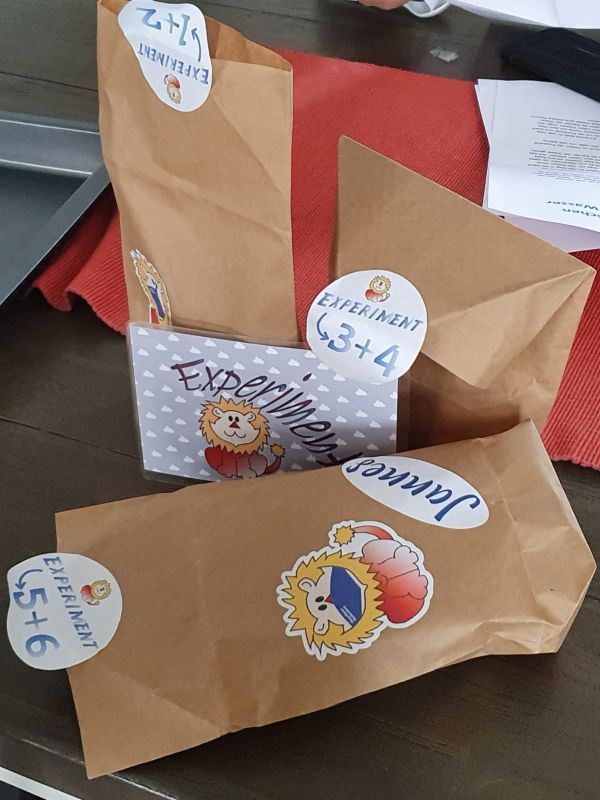 Da es 6 Experimente gab, wurden für jedes Kind jeweils 3 personalisierte Tüten gepackt.