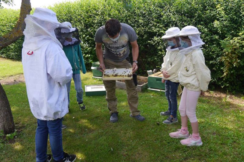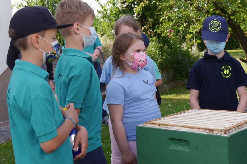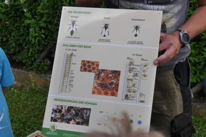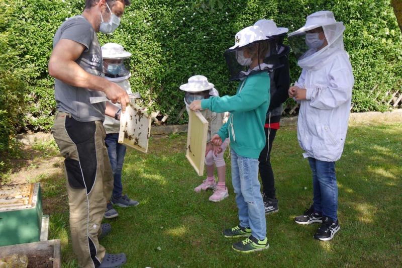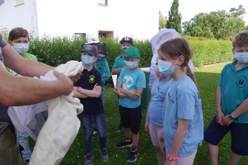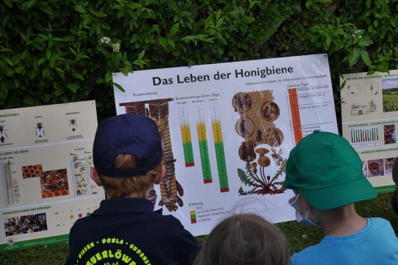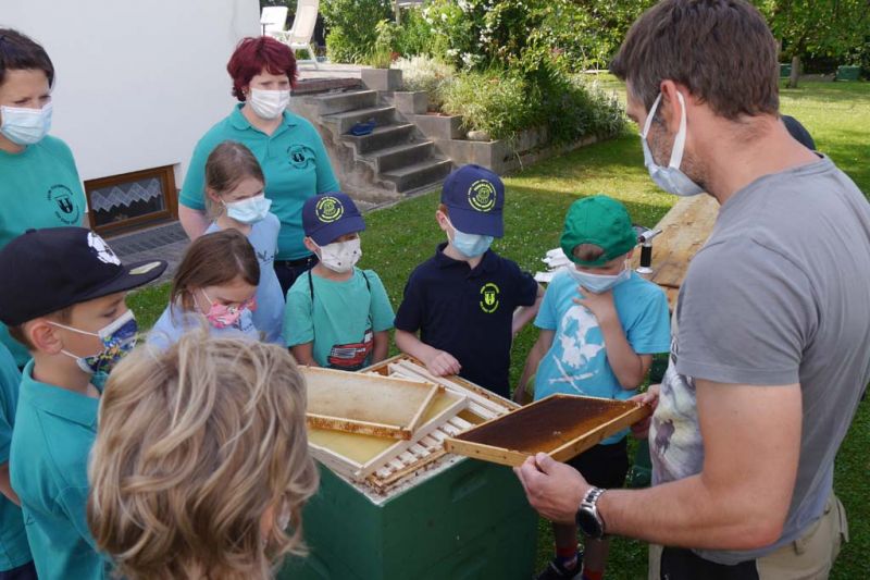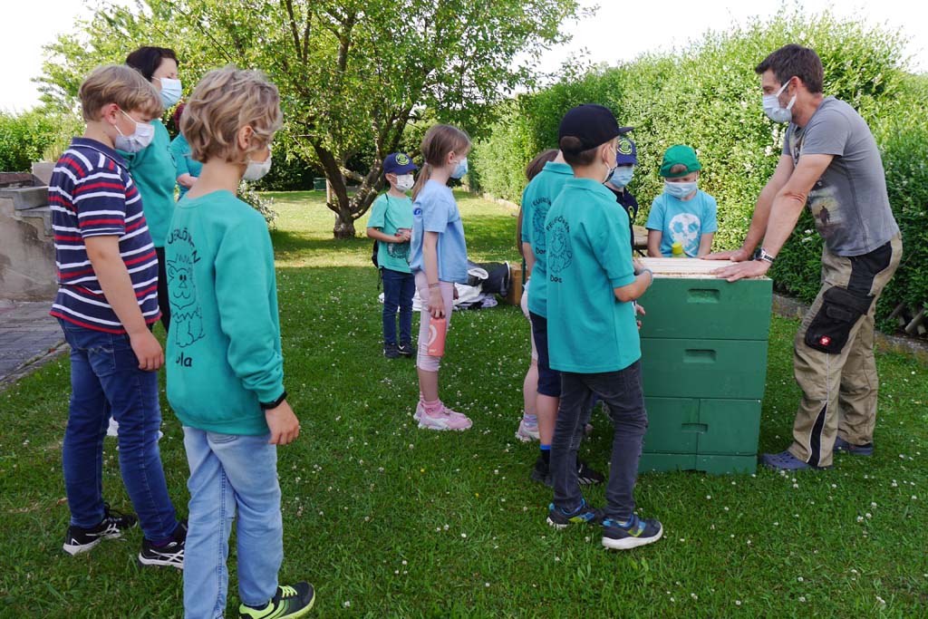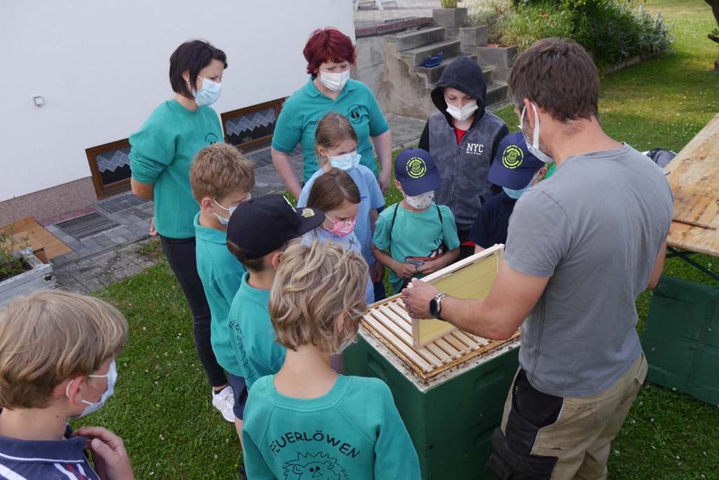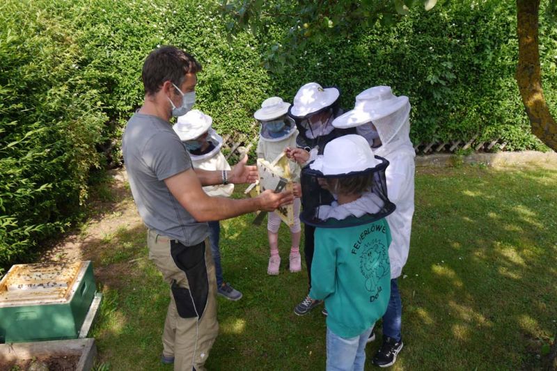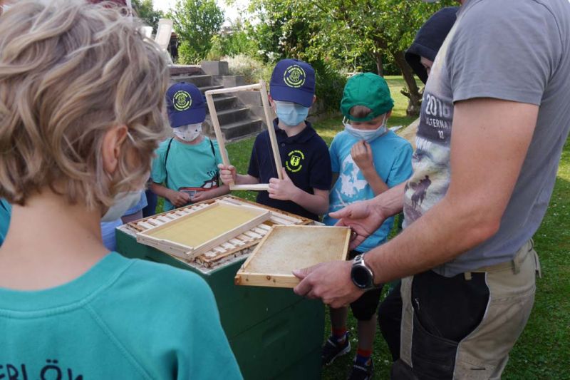 Natürlich haben die Gruppen dann getauscht und auch die zweite Gruppe konnte die Bienen aus nächster Nähe beobachten.