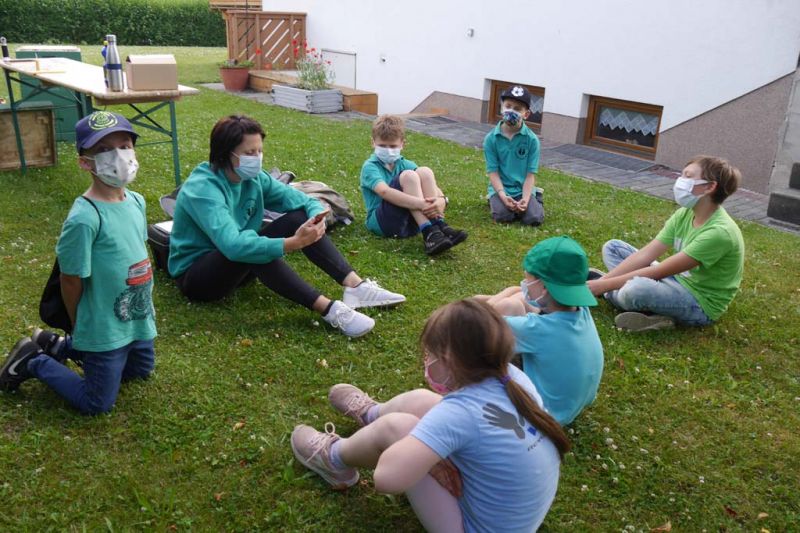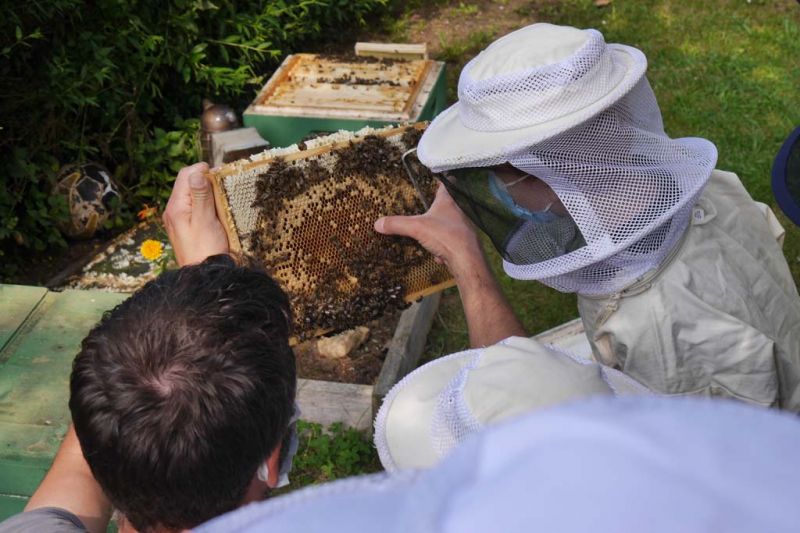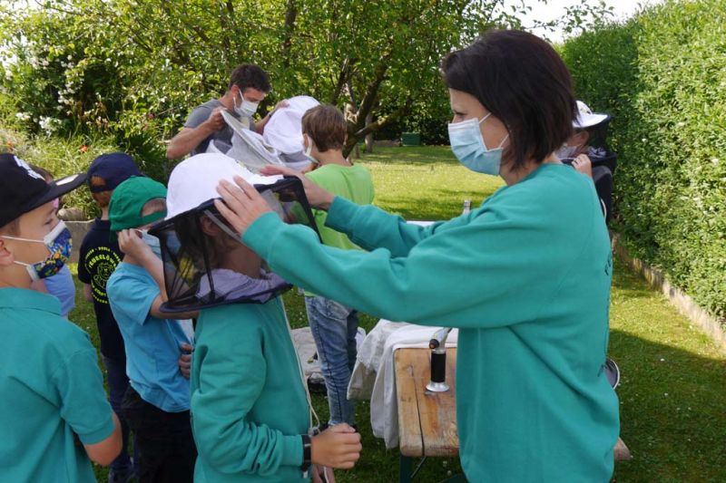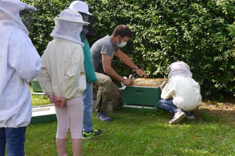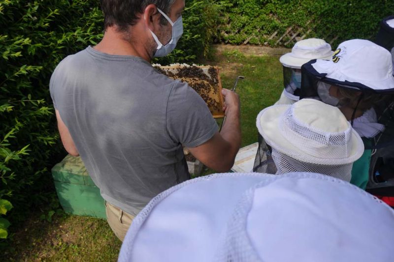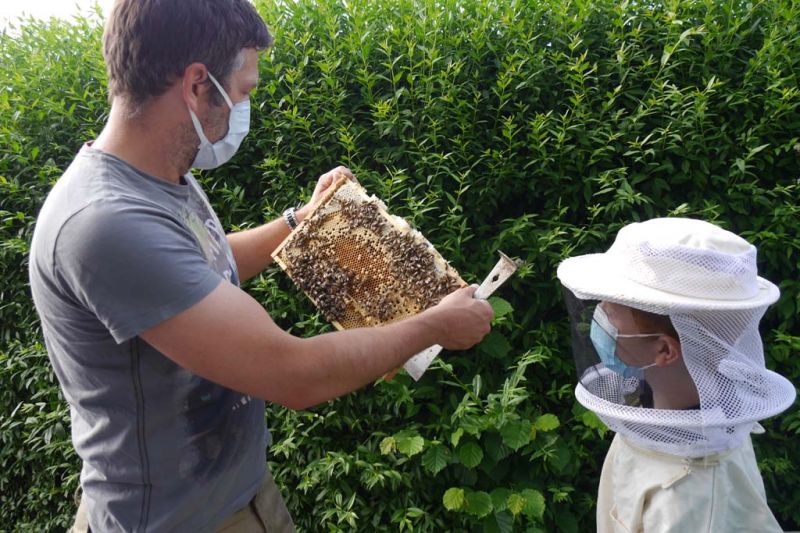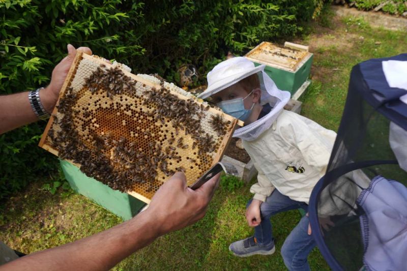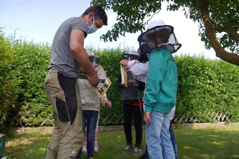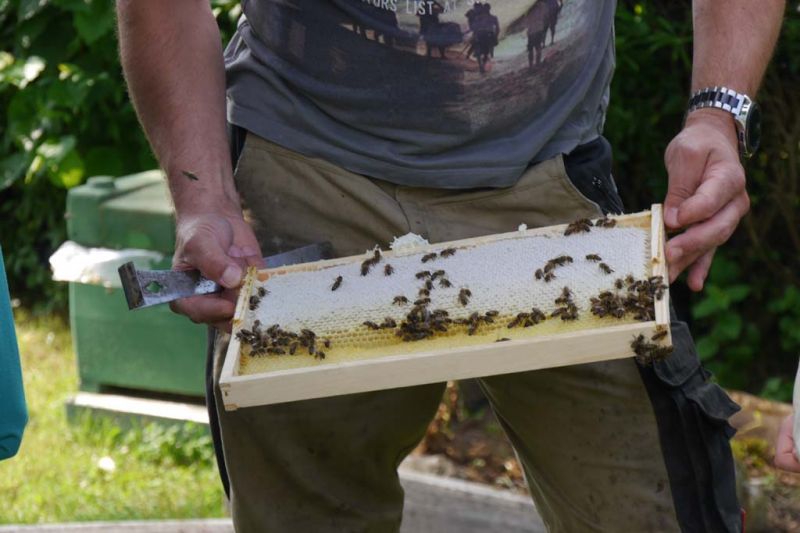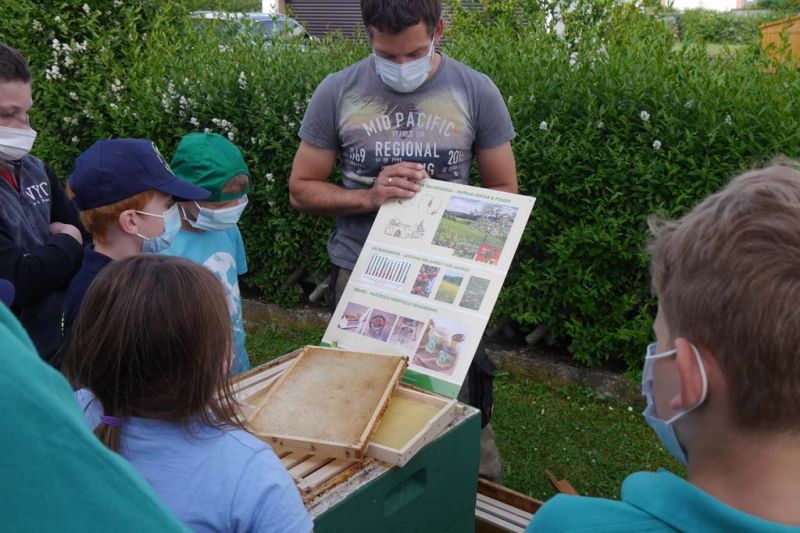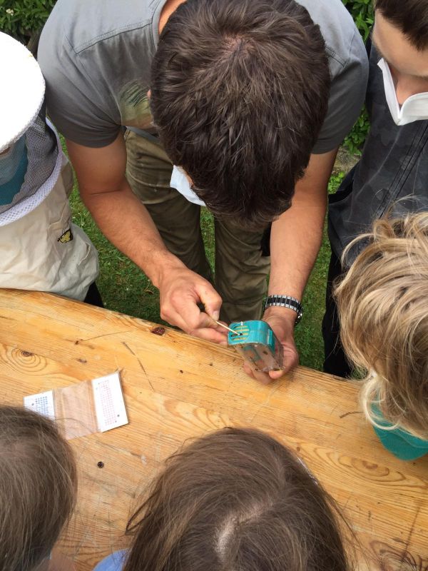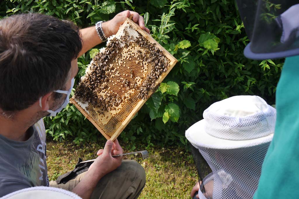 Natürlich haben die Gruppen dann getauscht und auch die zweite Gruppe konnte die Bienen aus nächster Nähe beobachten.