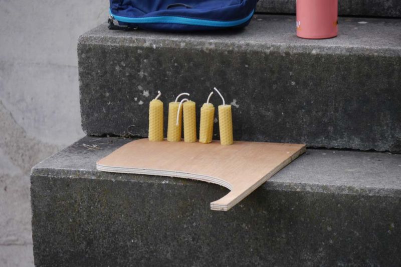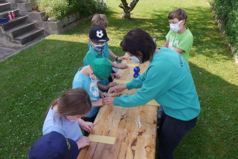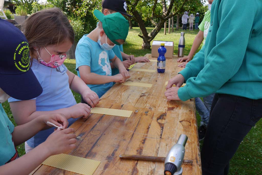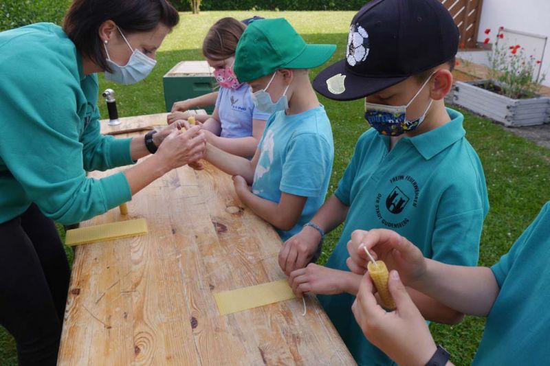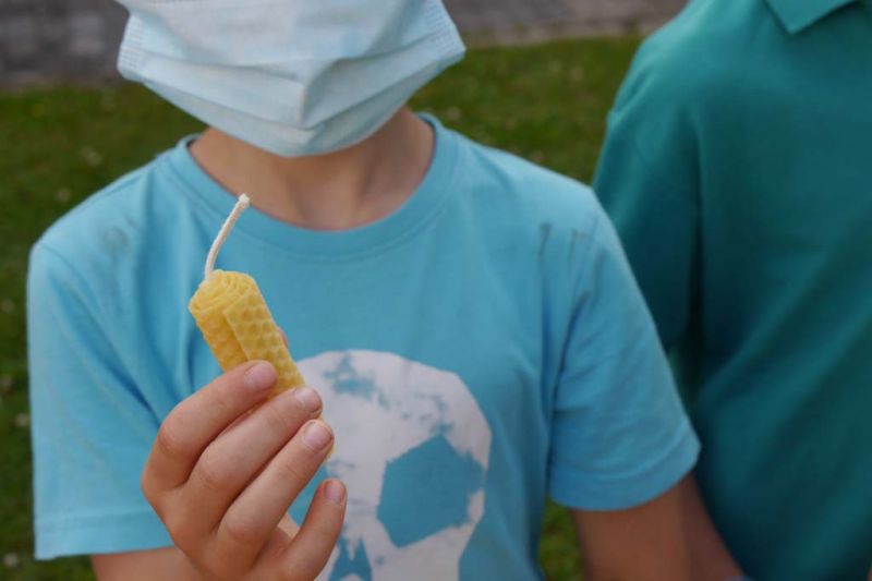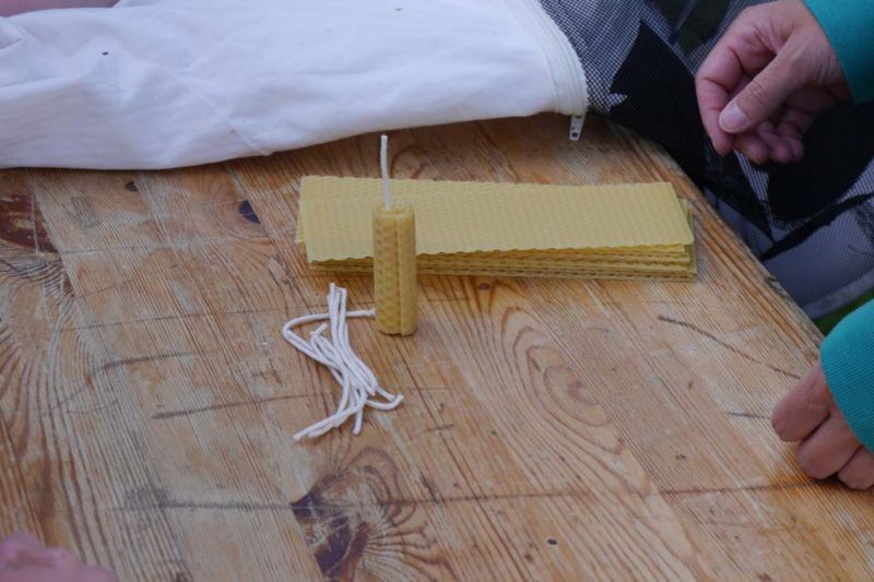 Während die eine Gruppe bei den Bienen war, stellte die andere Gruppe in dieser Zeit Kerzen aus Bienenwachsplatten her.