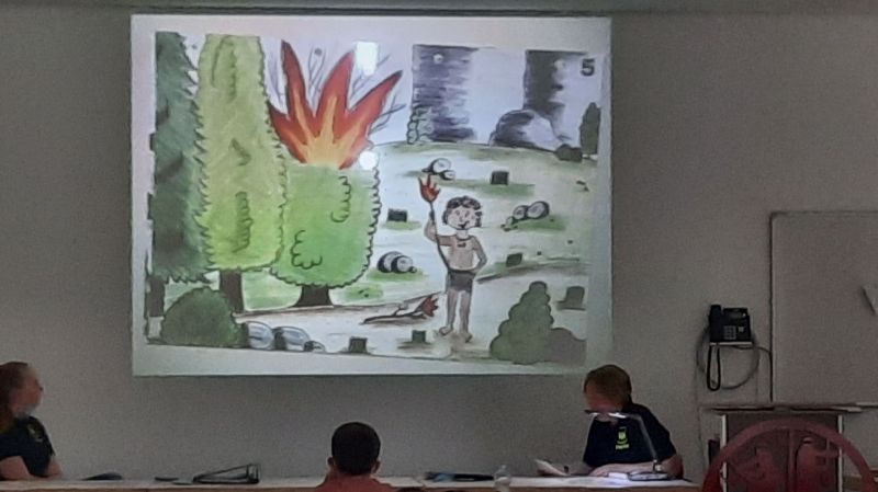 Dann lauschten wir der Geschichte vom kleinen Ericus…oder… wie der Mensch zum Feuer kam.
