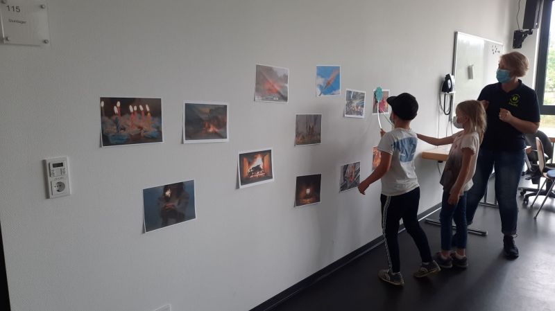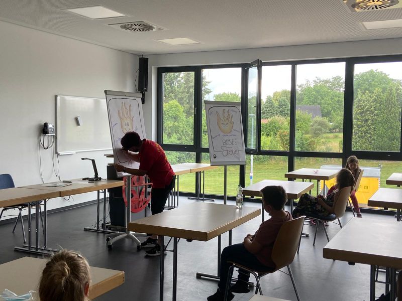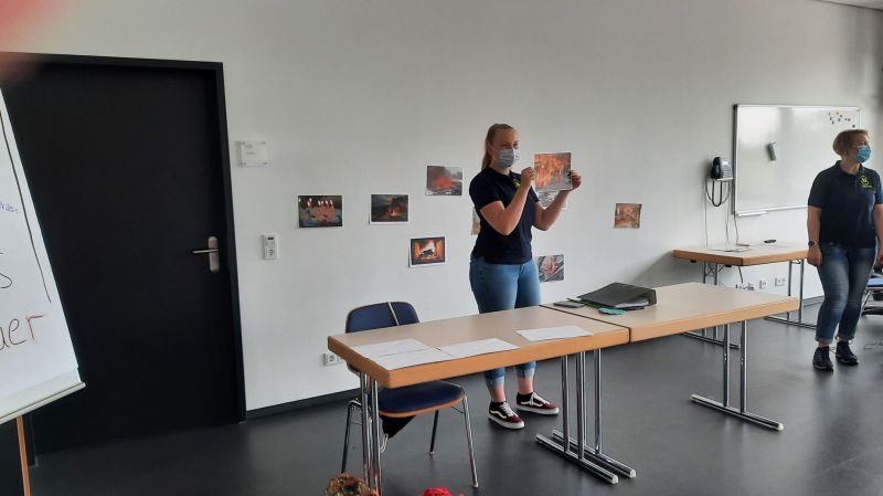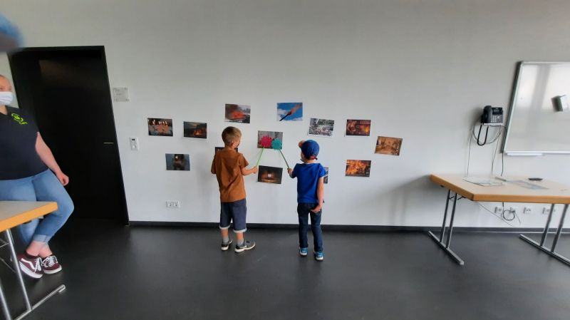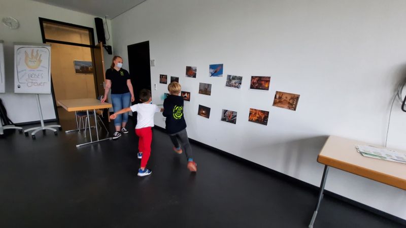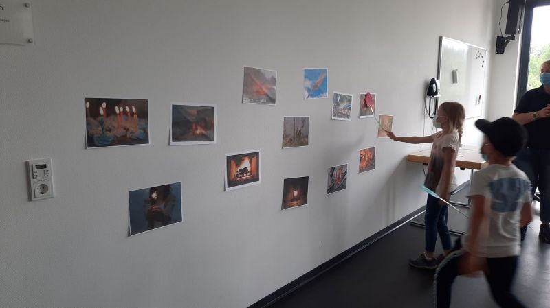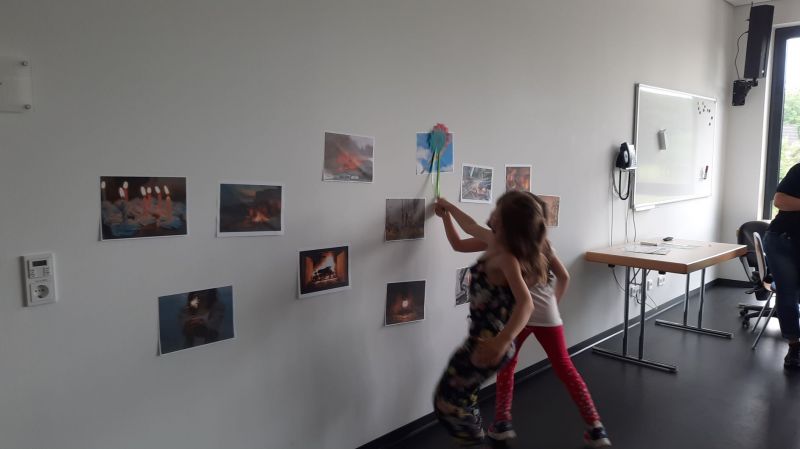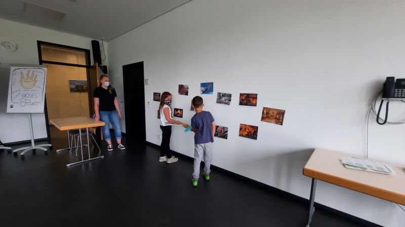 Da wir bei der Feuerwehr sind gab es im Anschluss natürlich ein Spiel, bei dem das Feuer gelöscht werden musste. Dazu gab es verschiedene Feuerbilder mit guten und bösen Feuer.