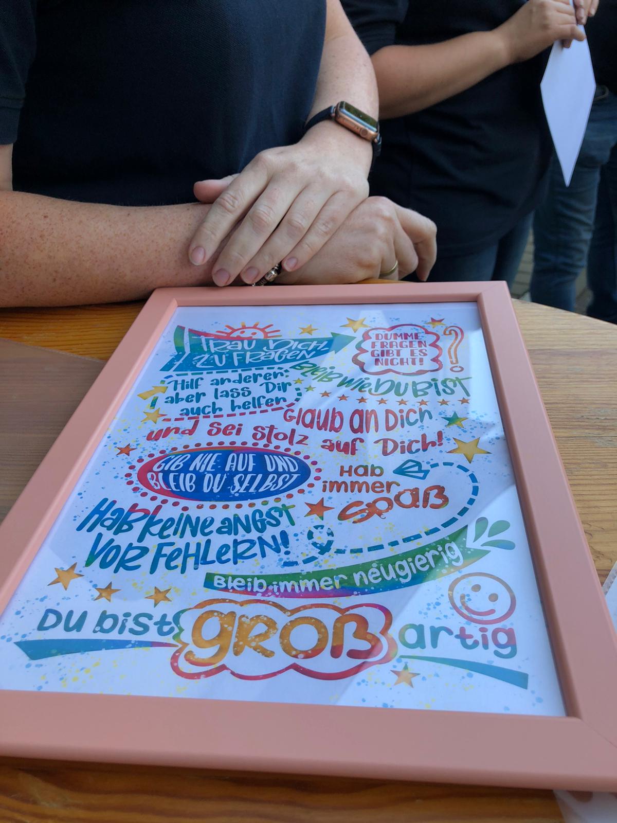 Als kleine Überraschung gab es noch einen kleinen Bilderrahmen mit ein paar „Mut-Machern“; die man immer mal gebrauchen kann.