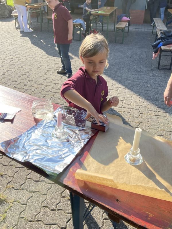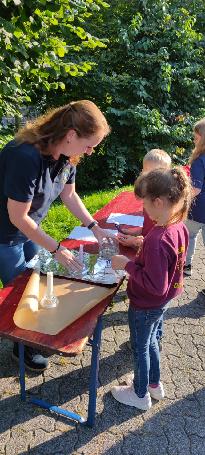 Auch das sichere Anzünden einer Kerze, eine tolle Geschichte mit der eigenen Adresse, die man erkennen musste und das richtige Verhalten im Brandfall durften nicht fehlen.
