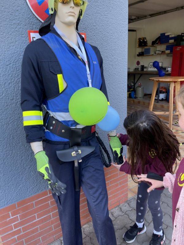 Unser „Feuerwehrmann-Hugo“ richtig für den Einsatz ausgestattet…