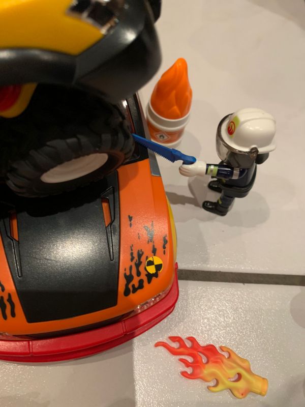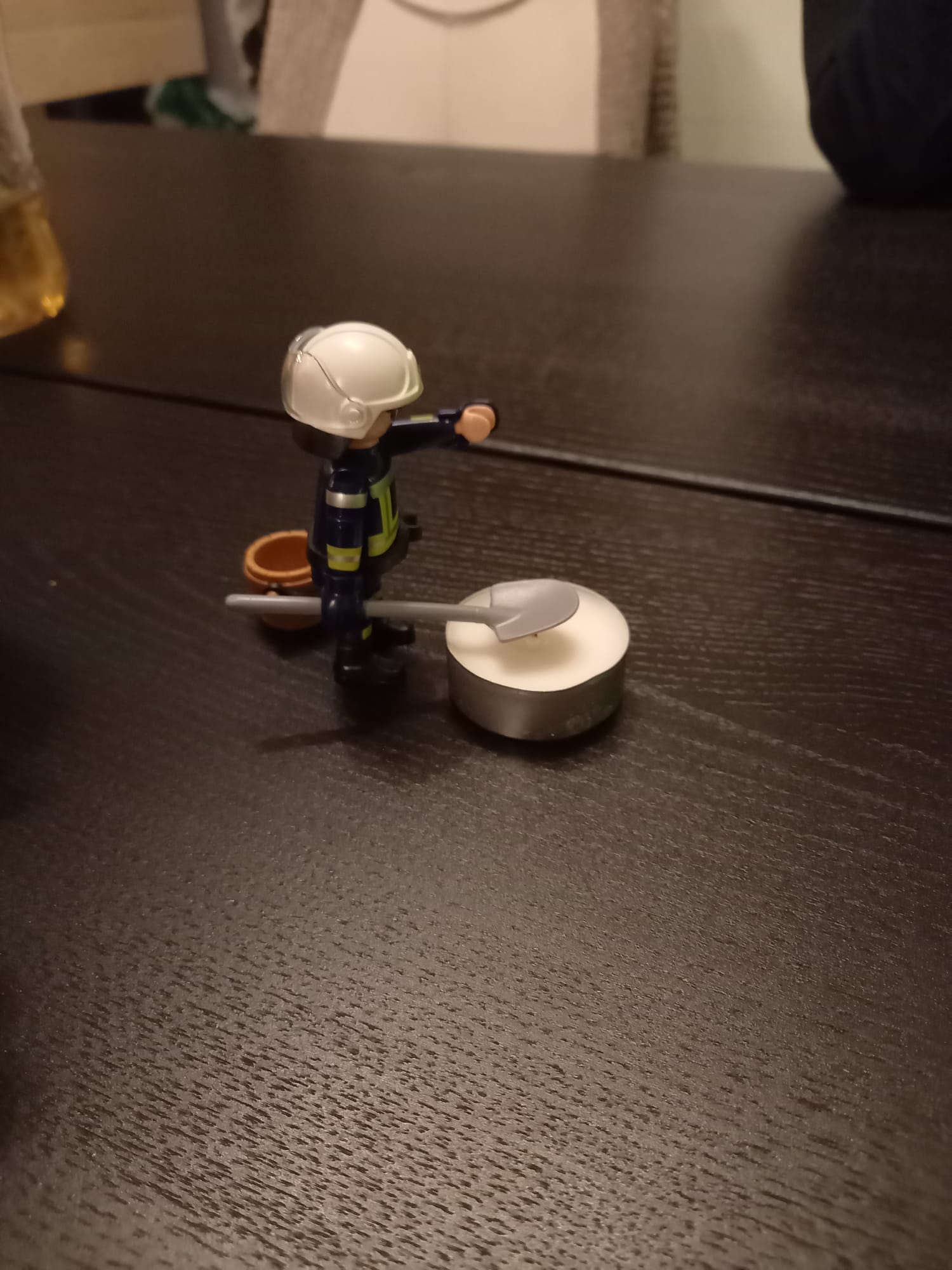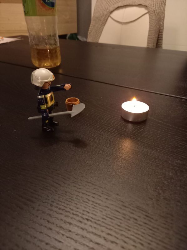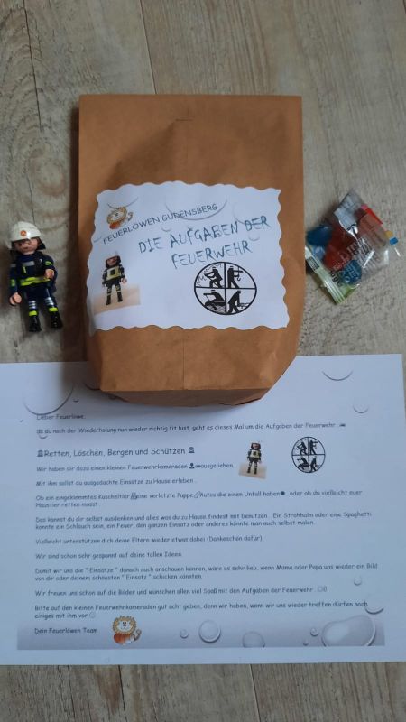 Per Drive in wurde dazu alles benötigte an der Feuerwehr abgeholt. In dem Tütchen befand sich allerdings nur ein kleiner Feuerwehrkamerad (von Playmobil) und ein Brief zur Erklärung.
