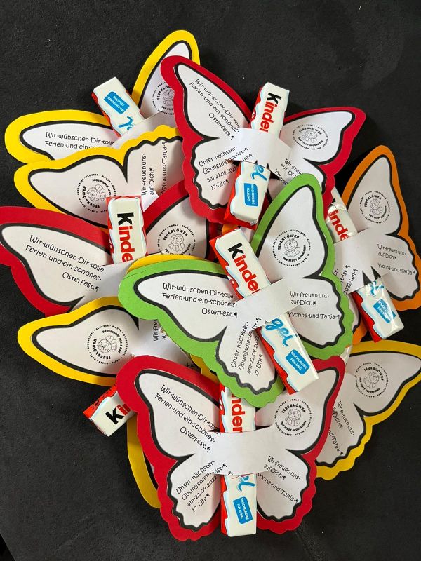 Da wir uns an diesem Tag bereits in die Osterferien verabschiedet haben, gabs für alle Feuerlöwen noch einen Schmetterling mit Ostergrüßen und einer Süßigkeit im Gepäck.